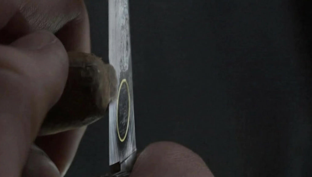Both knife and wallet are meticulously forged from Damascus steel infused with powdered meteorite fragments, each piece is anchored by a Muonionalusta meteorite centerpiece. Select accents are framed in pure nickel and finished with hand-applied 24K gold plating—capturing the swirling elegance and timeless allure of a cosmic singularity.